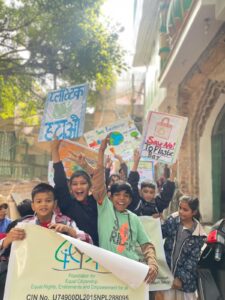 60 Children from our Trilokpuri community took to the streets to spread awareness about environmental conservation through a spirited rally. Carrying vibrant banners and chanting powerful slogans, they emphasized the importance of sustainable practices. Their enthusiasm and dedication reflected the growing consciousness of environmental responsibility among the younger generation.