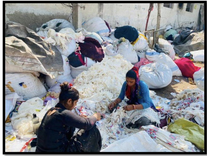 Located near garmet export factories, most families are involved in sorting waste material